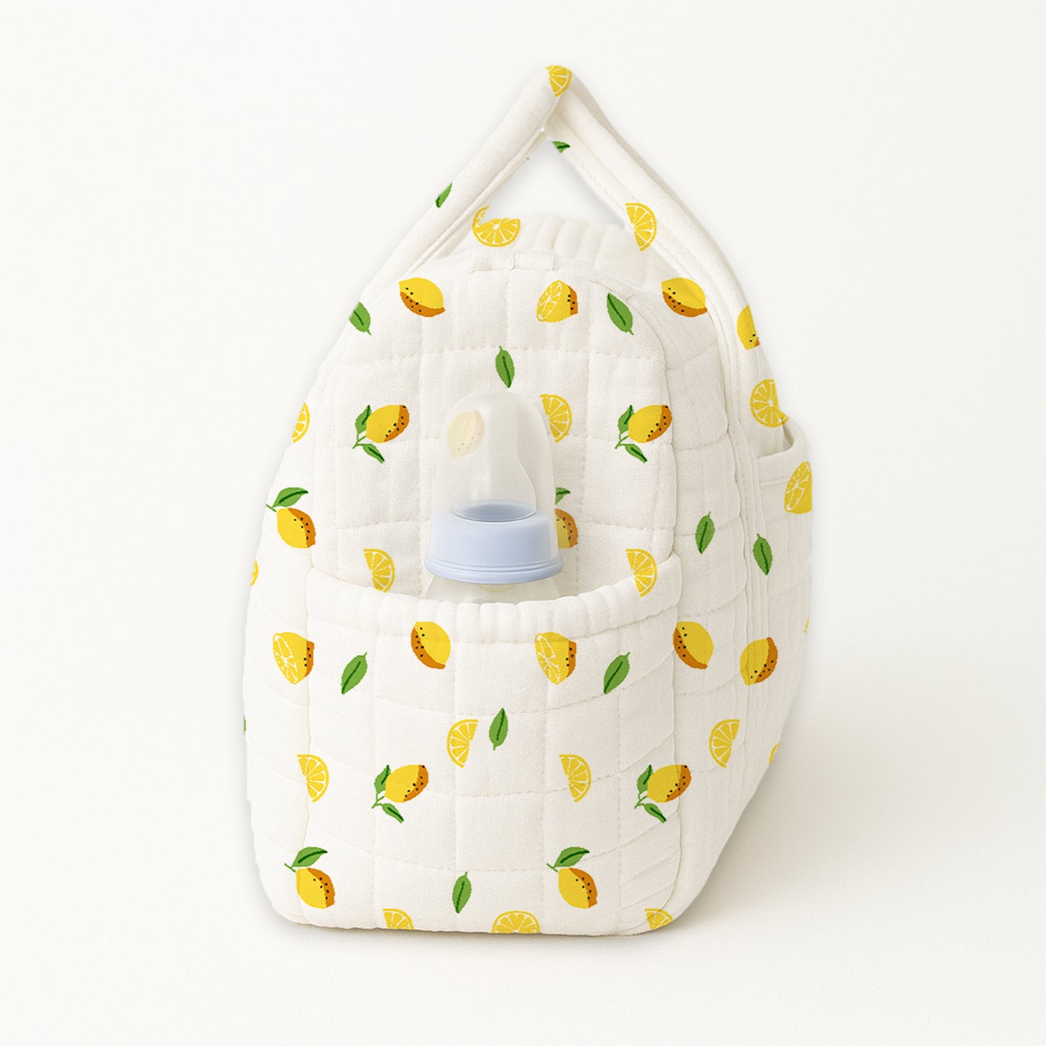 This diaper bag offers a large space and multiple compartments to store newborn essentials and mommy items. It features a wide-open main compartment with a zipper closure, a front parent pocket for quick access to baby items and bottle pouches on both sides, a zippered waterproof pocket for wet clothes or towels, and easy-access compartments inside for toys, diapers, or wipes. Its handy straps make it perfect for any travel time, from a trip to the park to a long journey. Made from lightweight cotton with quilted detailing, it’s great as a hospital or travel bag and makes a thoughtful gift for new moms. Plus, the waterproof interior pocket ensures no worries about spills.