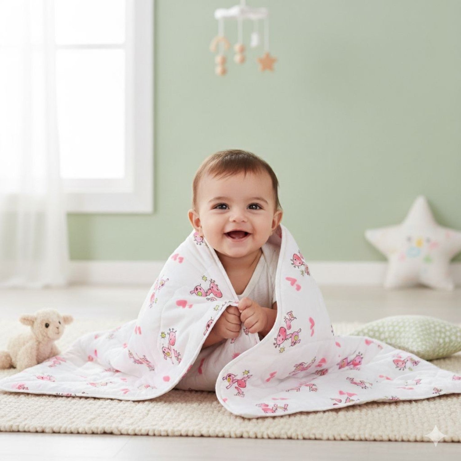 Purest Organic Cotton: The purest comfort with our organic cotton baby AC quilt. Crafted from the finest organic cotton, this quilt offers unparalleled softness and warmth.