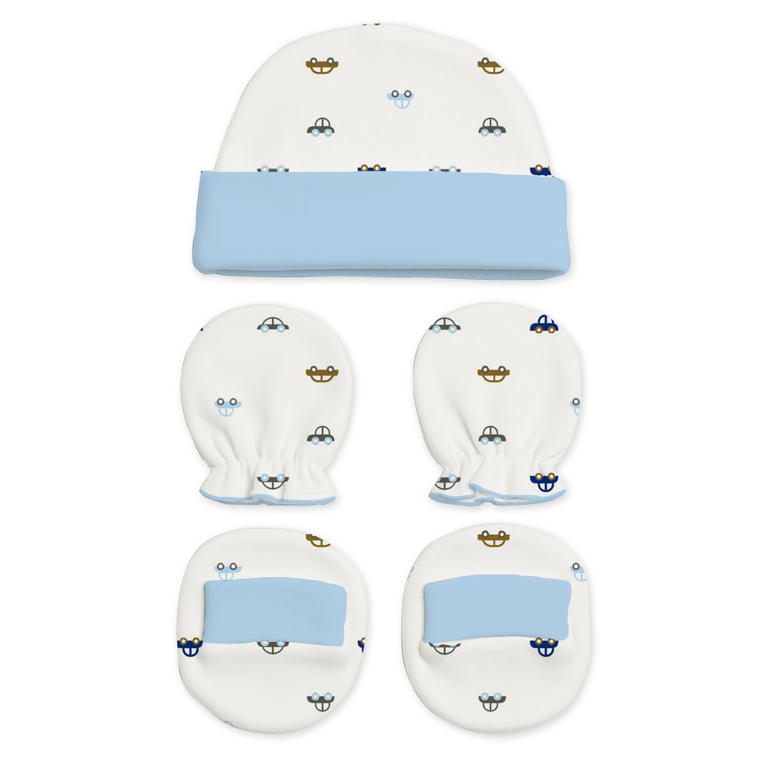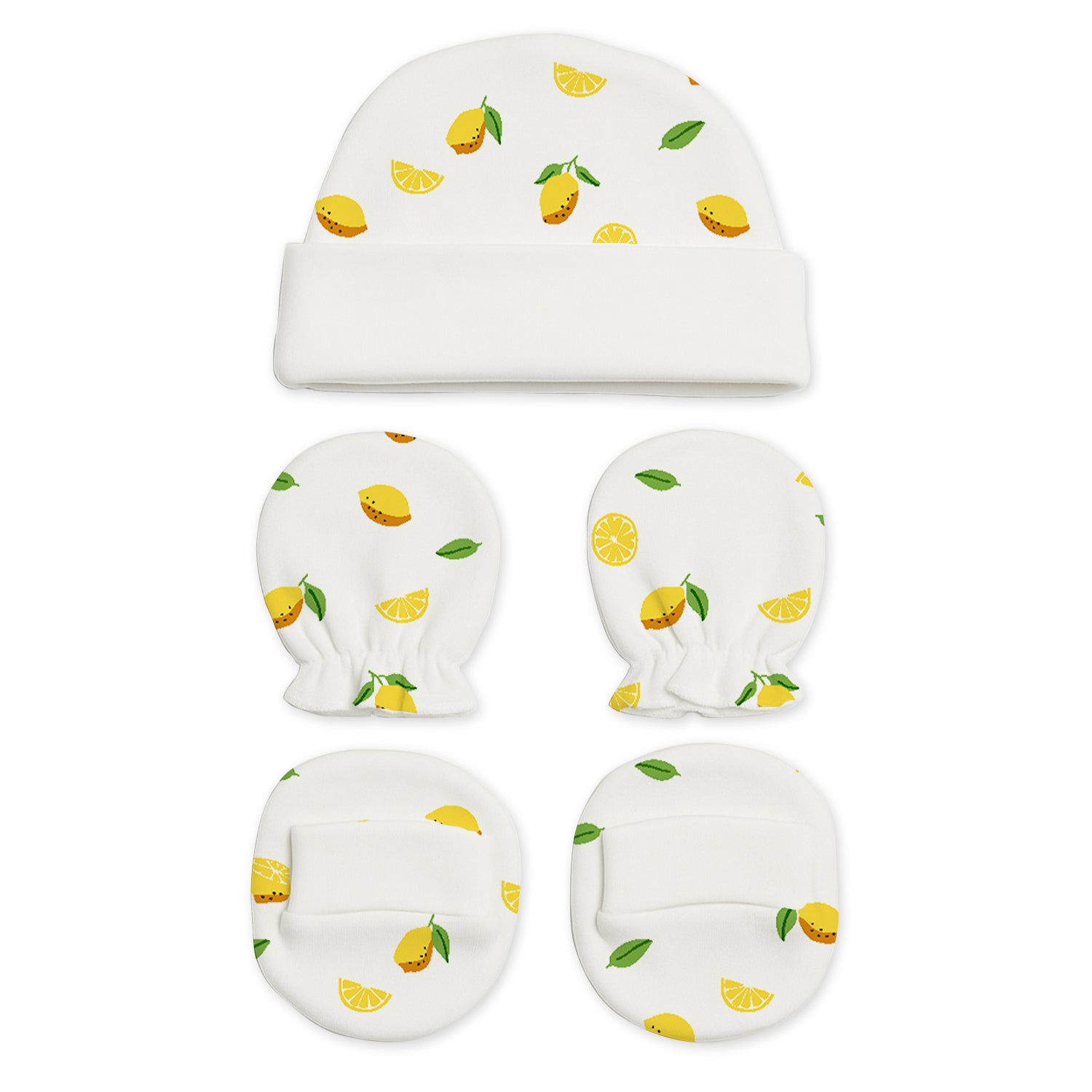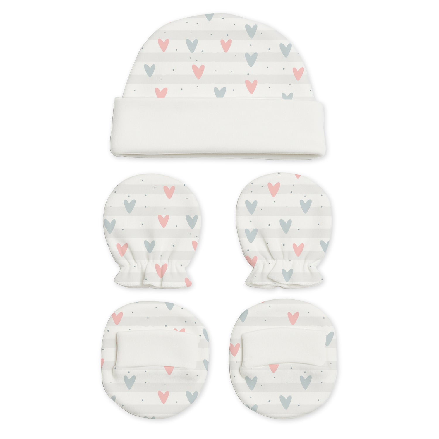 This adorable New Born Baby Cap Mitten Bootie Set will give your little one the ultimate comfort. Three sets in each pack, each in a mixed style to bring more variety and style to your baby's outfits. The soft and breathable fabric of this set keeps your baby's delicate skin soft and does not cause any irritation or discomfort throughout the day. The mittens and booties that are in the package are stretchy, so they will fit them snugly to protect their tiny hands and feet, while the caps will keep your baby's head well and cozy. This is perfect for everyday use or as a great gift to an expecting mother during a baby shower.