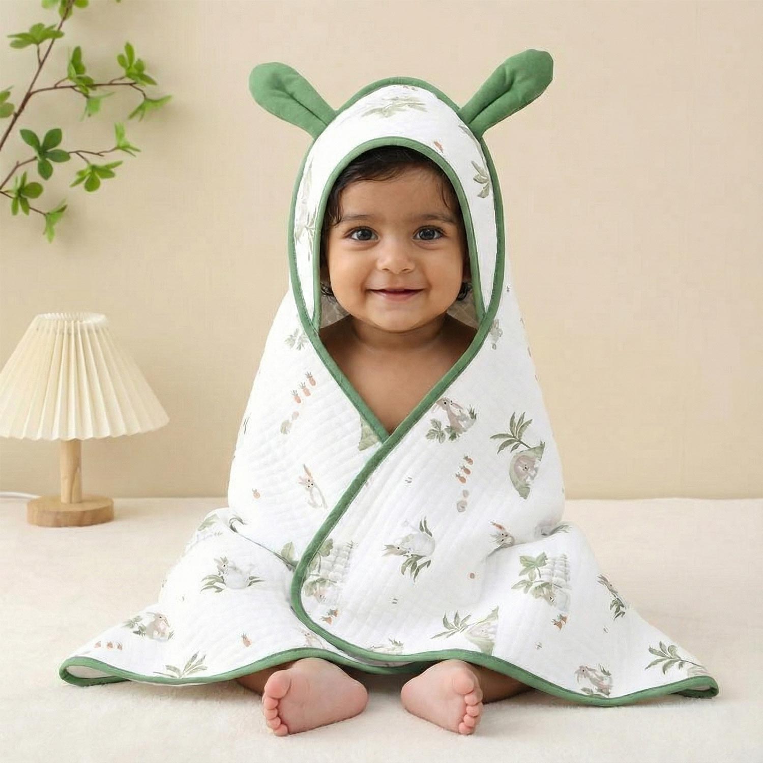 The super soft & quick dry fabric ensures your baby stays snug while reducing irritation or rashes. The cute hood with a secure band gives extra protection for your newborn’s head and helps lock in warmth. Lightweight, breathable, and generously sized, this towel is perfect for daily baths, pool time, and travel. Thoughtfully crafted for new parents, this is a must-have baby essential and also makes a perfect baby shower gift.