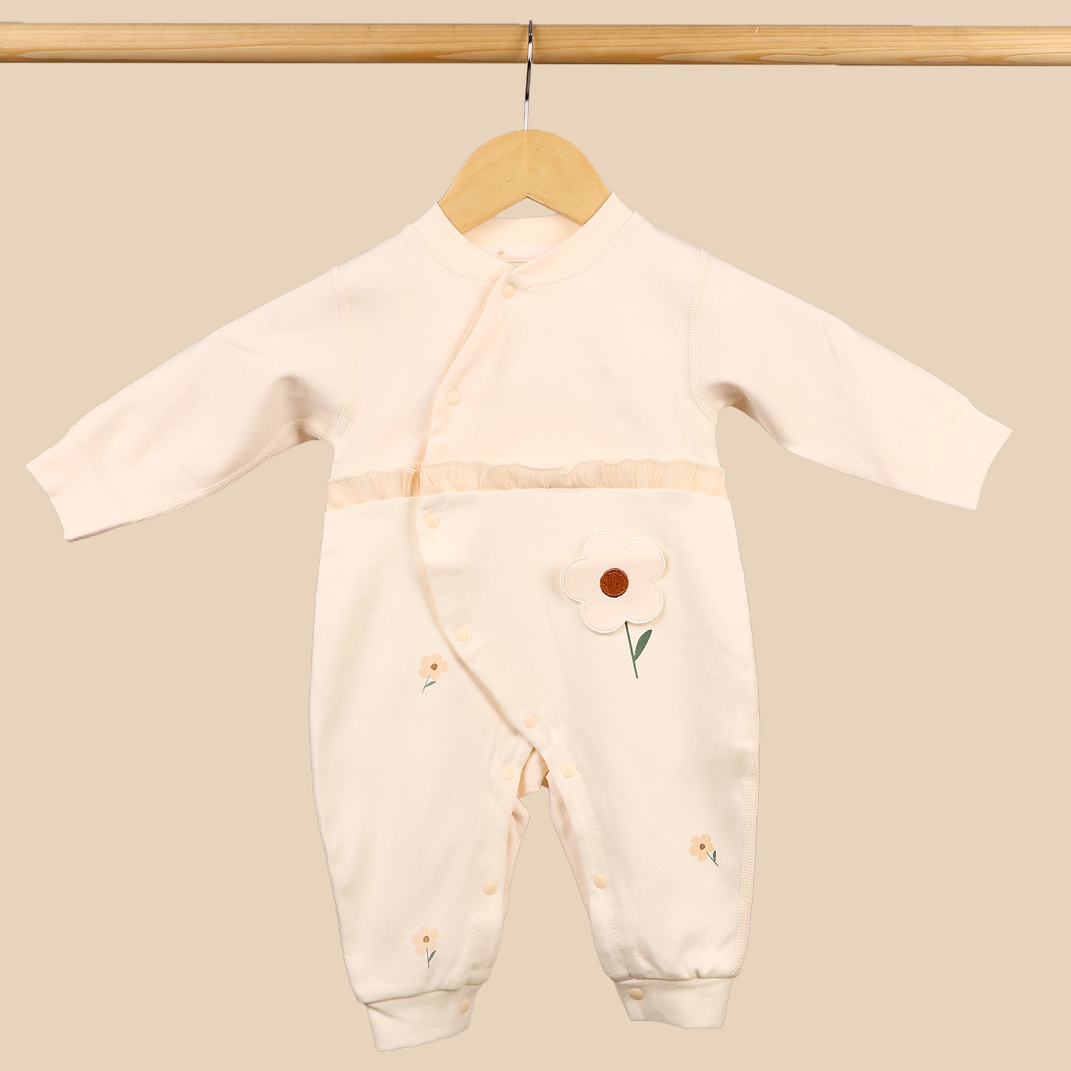 Organic Cotton Full Body Winter Romper for Babies | Soft & Warm Baby Romper | 0-6 Months | Flower | Pack of 1