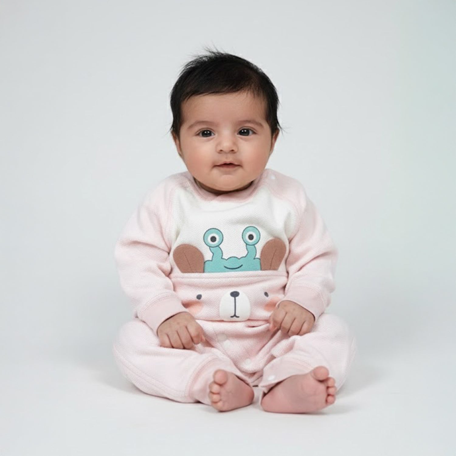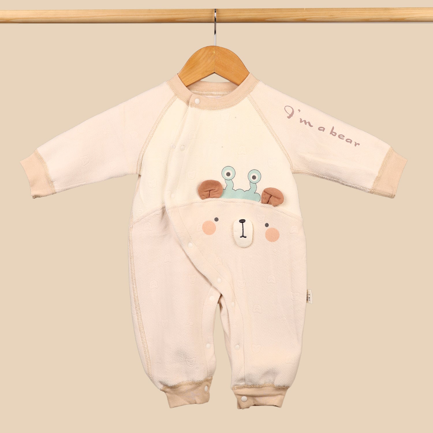 Organic Cotton Full Body Winter Romper for Babies | Soft & Warm Baby Romper | Bear | 0-6 Months | Pack of 1