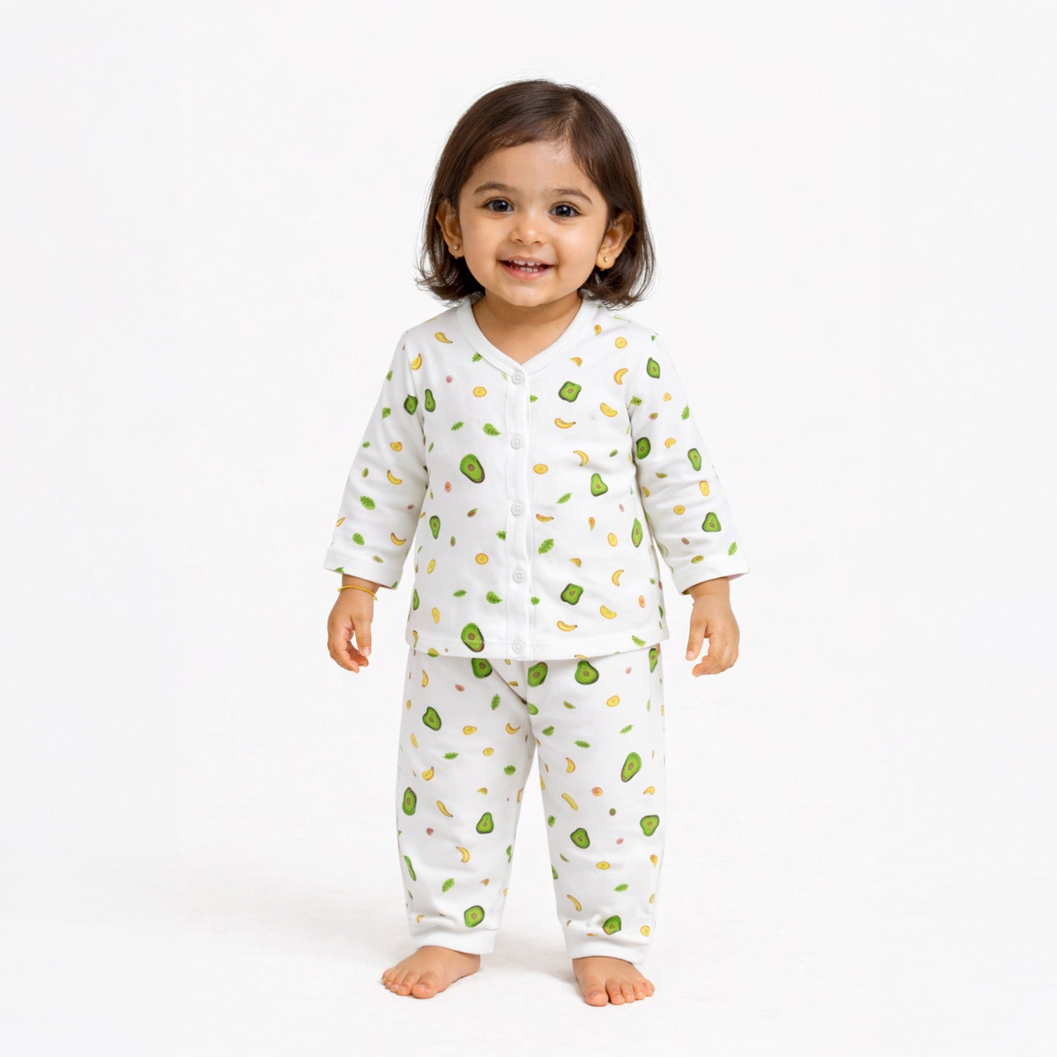 Organic Cotton Full Sleeve Baby Co-Ord Set | Soft Baby Shirt & Pant Set | Breathable Nightsuit / Sleepsuit for Infants & Toddlers | Avocado | Set of 1