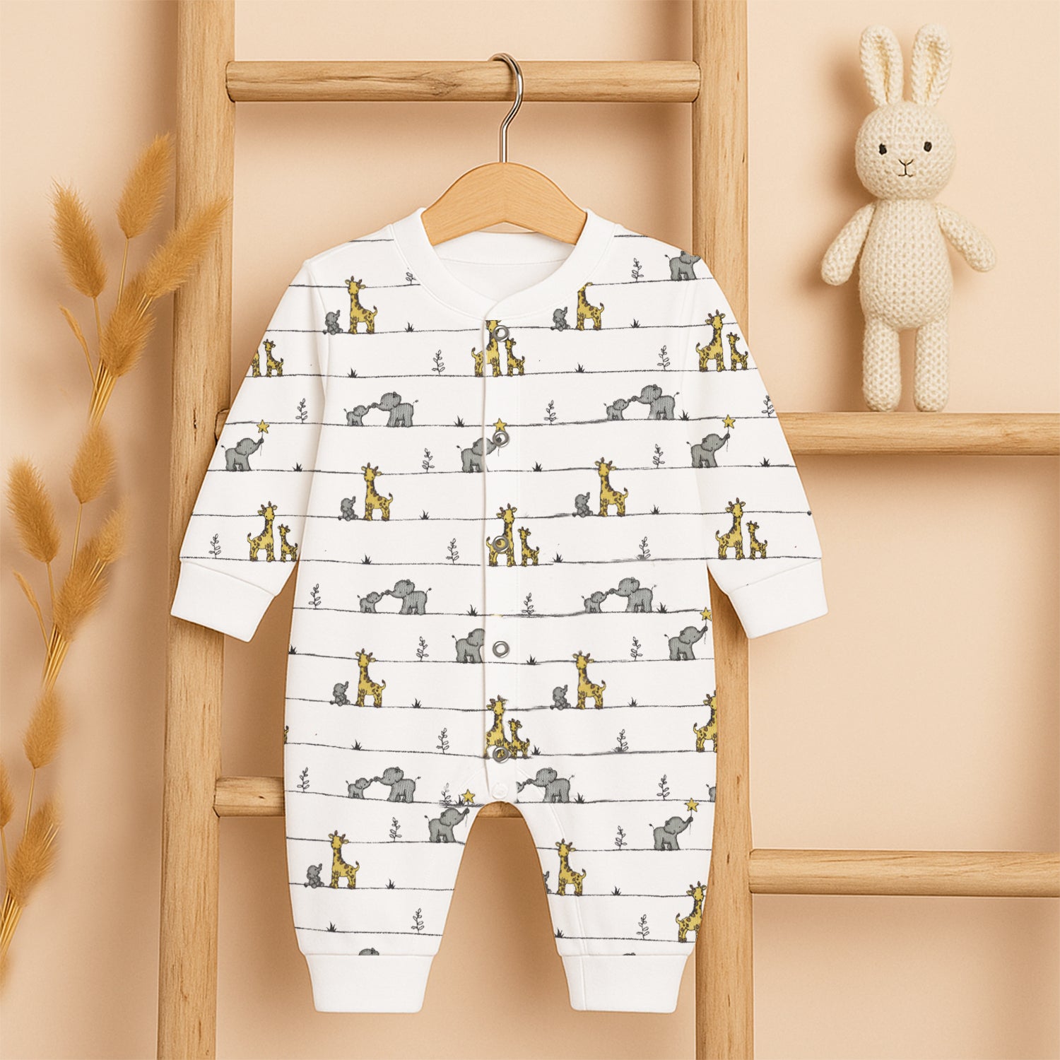 This Full Body Romper is made from Super Soft Breathable organic cotton fabric. It's the perfect first-ever clothing for your baby, providing a feather-like touch and comfort for their delicate skin. With its softness increasing with every wash, it's perfect for daily wear or sleepwear.